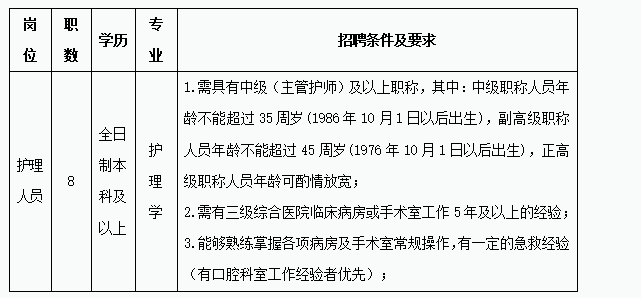 因醫院工作需要,現面向社會公開招聘8名護理工作人員,具體招聘要求如下: