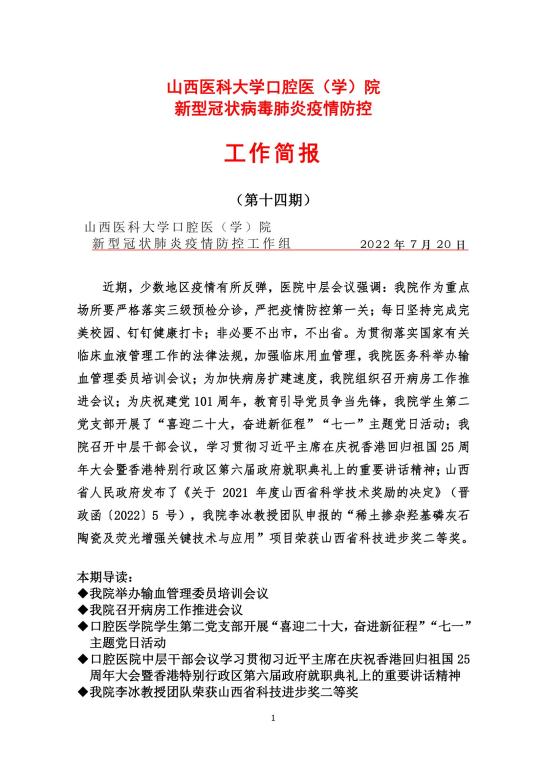 我院新型冠狀病毒肺炎疫情防控工作簡報(2022年 第十四期)