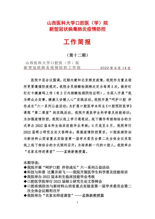 我院新型冠狀病毒肺炎疫情防控工作簡報(2022年 第十二期)