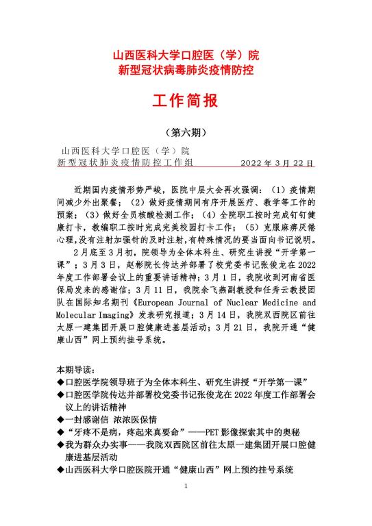我院新型冠狀病毒肺炎疫情防控工作簡報(2022年 第六期)