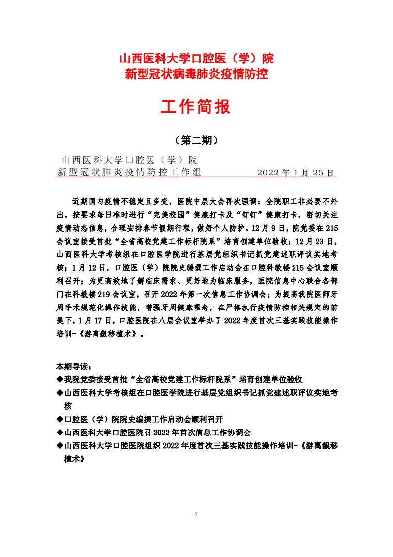我院新型冠狀病毒肺炎疫情防控工作簡報(2022年 第二期)