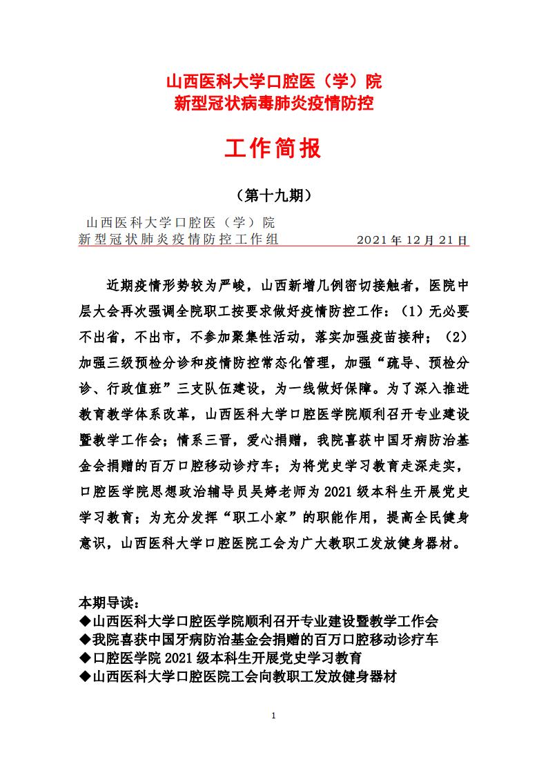 我院新型冠狀病毒肺炎疫情防控工作簡報(2021年 第十九期)