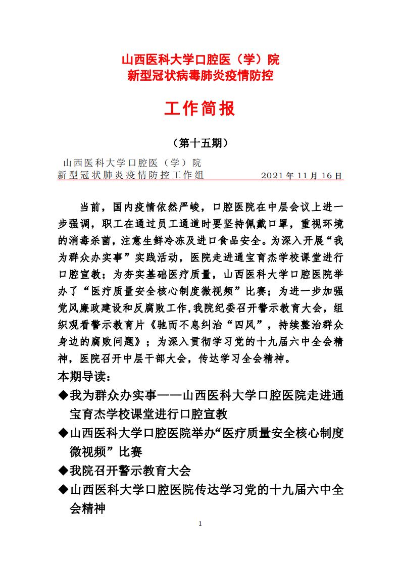 我院新型冠狀病毒肺炎疫情防控工作簡報(2021年 第十五期)