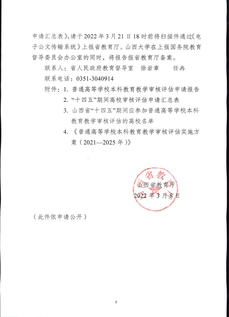 山西省教育廳關(guān)于報送山西省“十四五”期間普通高等學(xué)校本科教育教學(xué)審核評估計劃的通知