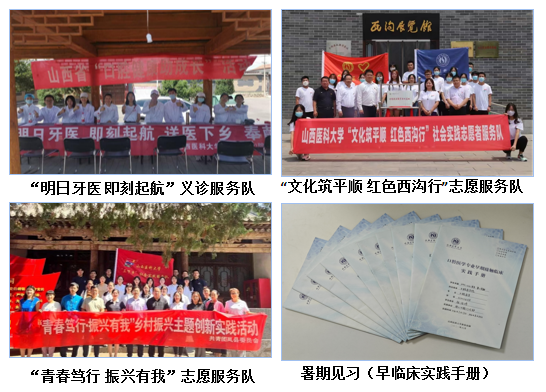 學院在山西省各種重大口腔健康相關項目中堅持立德樹人,培養學生大健康意識和人文關懷精神,牽頭開展了山西省第一次口腔健康流行病學調查;我院師生參與國家級5A公益項目公益慈善項目“山中雛菊,筑夢同行”,開啟口腔預防愛心之旅,受到中國牙病防治基金會嘉獎,贈與價值百萬“愛心口腔流動保健車”一輛,為基層群眾開展優質暖心的口腔健康服務打通“最后一公里”;作為全國兒童口腔疾病綜合干預項目山西省承擔單位,我院實踐導師帶領大學生組成的“醫”心“醫”意愛牙聯盟——口腔暑期實踐隊,赴省內各地開展“青春篤行 振興有我”鄉村振興主題創新實踐活動,開展愛心醫療服務、進行紅色基地參觀、探訪鄉村產業基地、賡續紅色血脈精神。
