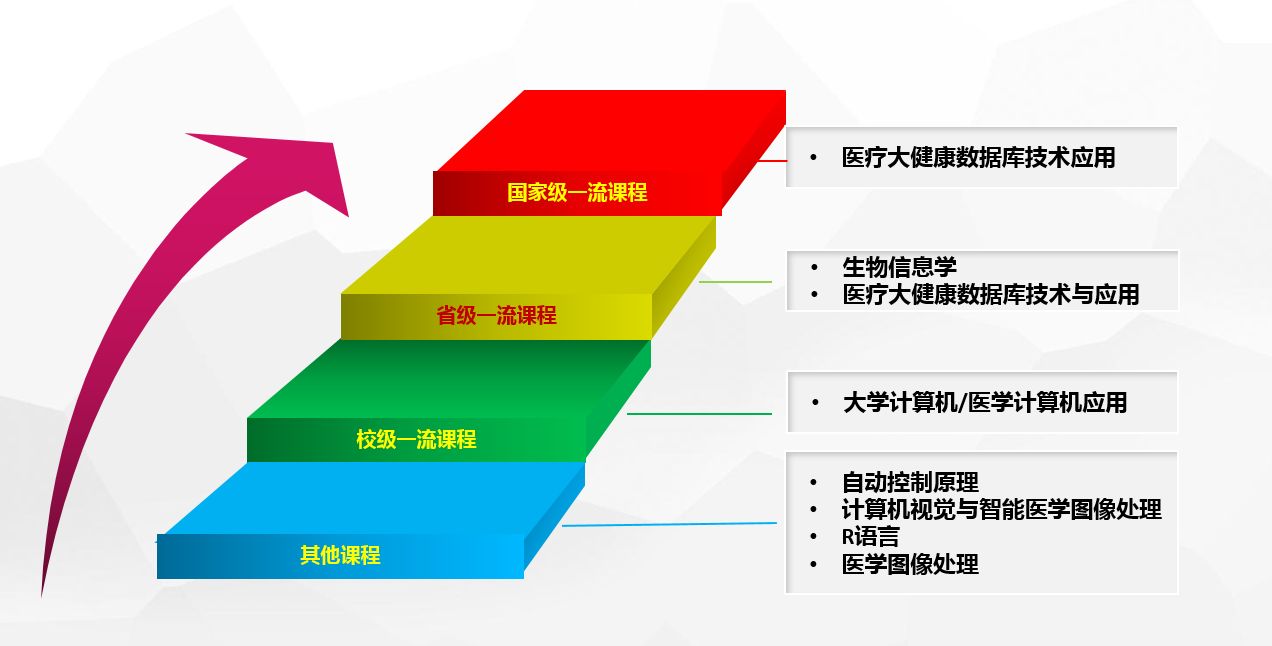 計(jì)算機(jī)教學(xué)部堅(jiān)持以人才培養(yǎng)為中心,以提高教學(xué)質(zhì)量為重點(diǎn),以提高教學(xué)水平為手段,積極推進(jìn)計(jì)算機(jī)精品課程建設(shè)。《醫(yī)療大健康數(shù)據(jù)庫(kù)技術(shù)與應(yīng)用》獲批2023年度國(guó)家級(jí)線上線下混合一流本科課程,省級(jí)一流課程2門、校級(jí)一流課程1門、中國(guó)高校計(jì)算機(jī)CMOOC聯(lián)盟優(yōu)秀課程1門。