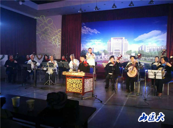 聯(lián)歡會在具有濃郁山西鄉(xiāng)情的器樂大合奏《桃花紅杏花白》中拉開序幕。第二、第十支部表演的交誼舞,展示了老同志對生活的誠摯熱愛。第九支部選送的合唱《沒有共產(chǎn)黨就沒有新中國》,唱出了老同志深厚的愛黨愛國情懷。第六支部通過情深意切的配樂詩朗誦《沁園春·相識》,回憶了他們相識相知的青蔥歲月。京劇團選送的《沙家浜》《三家店》選段,深情激昂、氣勢磅礴,展現(xiàn)了老年京劇團成員深厚的藝術(shù)功底。女生小合唱《金風送來的時候》,用悠揚的歌聲帶大家一起憧憬那美好時光。第六支部選送的二胡獨奏《北京有個金太陽》,如泣如訴的演奏表達了離退休老同志對領(lǐng)袖毛主席的深切懷念。離休一支部選送的獨唱《送別》,抒發(fā)了離休同志對昔日戰(zhàn)友的不舍之情。第三、第五支部選送的男女重唱《感恩》,贏得了老同志的陣陣掌聲。一曲柔美的《女人花》,一組搖曳的身姿,展示了老年模特隊的自信和活力。聲樂隊選送的合唱《革命人永遠是年輕》,進一步激發(fā)了大家永葆青春的神采。聯(lián)歡會在極具感染力和表現(xiàn)力的男女重唱《共筑中國夢》中落下帷幕。形式多樣的節(jié)目,展現(xiàn)了全校老同志愛黨愛國、熱愛生活,老有所學、老有所樂的精神風貌。