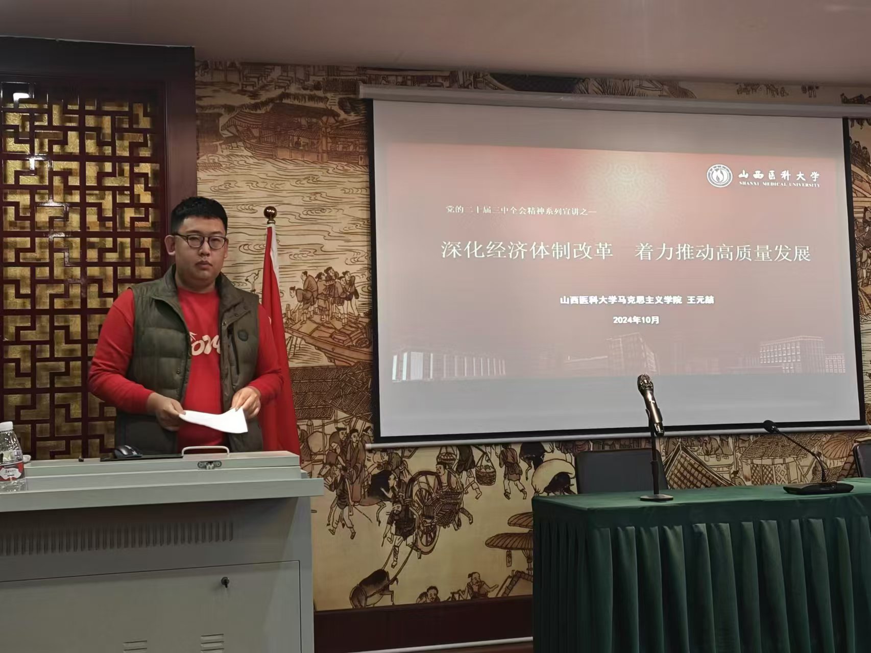 在寧化府益源慶醋業(yè)會議室,學(xué)2023級研究生王元喆進(jìn)行了“深化經(jīng)濟(jì)體制改革,著力推動高質(zhì)量發(fā)展”的宣講。首先,他從四個具體視角切入,介紹了深化經(jīng)濟(jì)體制改革的必要性,通過黑神話:悟空游戲帶動山西文旅走紅,產(chǎn)生巨大經(jīng)濟(jì)效益的事例,使大家更好地理解了深化經(jīng)濟(jì)體制改革的“牽引作用”。隨后,他結(jié)合近期發(fā)生的熱點(diǎn)事件,為大家逐一解讀了深化經(jīng)濟(jì)體制改革的五個主要任務(wù)。最后,王元喆同學(xué)結(jié)合寧化府醋業(yè)用“新瓶”裝“老醋”,通過電商平臺走紅暢銷的例子,說明了發(fā)揮“企業(yè)家精神”對企業(yè)長遠(yuǎn)發(fā)展的重要意義,并向大家詳細(xì)闡釋了推動高質(zhì)量發(fā)展過程中必須統(tǒng)籌好的“三對關(guān)系”。