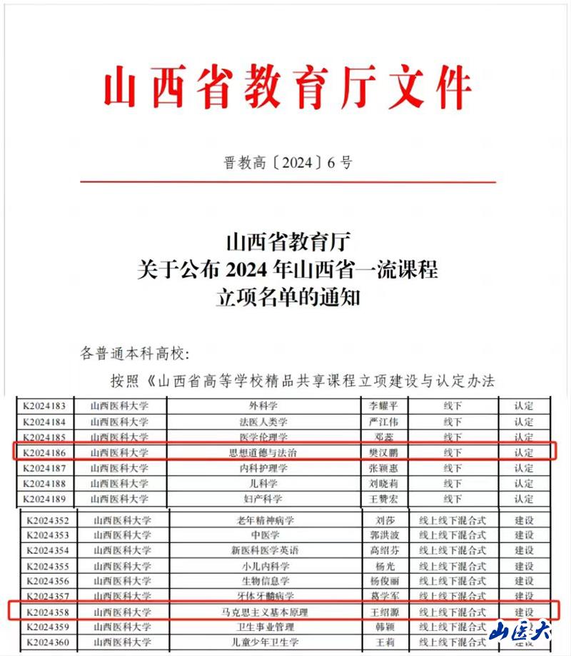 近日,山西省教育廳公布了2024年山西省一流課程評選結果,我校“思想道德與法治”和“馬克思主義基本原理”兩門課程獲批省級精品課程。至此,加上我校馬克思主義學院之前獲批的2門國家級一流本科思政課程、3門山西省一流課程,我校實現了本科思政課省級以上精品課程的全覆蓋。