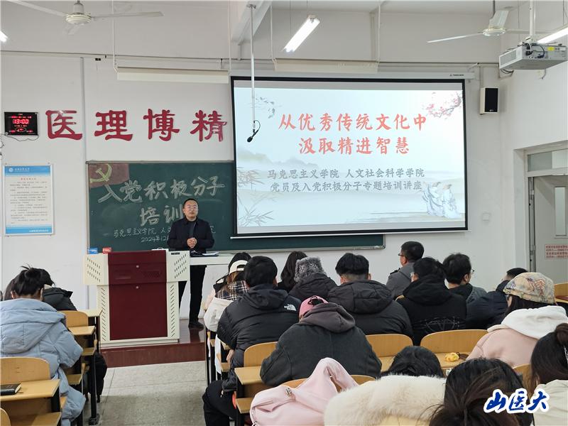 王志新作了題為“從優(yōu)秀傳統(tǒng)文化中汲取精進智慧”的講座。他從中華優(yōu)秀傳統(tǒng)文化視野出發(fā),與廣大黨員及入黨積極分子交流了青年應(yīng)如何立德修身、青年應(yīng)秉持的生命價值觀與奮斗觀、青年正確的生活觀、青年正確的戀愛觀和擇友觀四方面的文化智慧,并指出廣大有志青年要提升對標(biāo)古之君子,不斷加強品性磨煉,努力提升自我修養(yǎng),最終做到修己達人。
