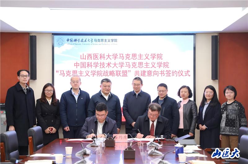 中國科學技術大學黨委常委、宣傳部部長王偉介紹了中國科大的辦學方針和“紅專并進、理實交融”的校訓精神。他指出,兩校共建馬克思主義學院戰略聯盟,將有力推動雙方在教育教學、學術研究、人才培養等方面的深度融合,希望雙方建立常態化合作機制,在學科建設、課程開發、師資培養等領域廣泛合作。我校黨委常委、宣傳部部長侯小寶介紹了山醫106年發展歷程和在新時代醫德教育新模式方面的探索實踐,認為兩校馬克思主義學院有著廣泛合作基礎和共同發展愿景,期待雙方充分發揮各自優勢資源,以醫學的溫度和科技的速度,共同推進“大思政課”育人體系高質量建設。