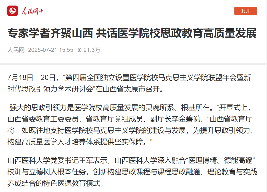 人民網:專家學者齊聚山西 共話醫學院校思政教育高質量發展