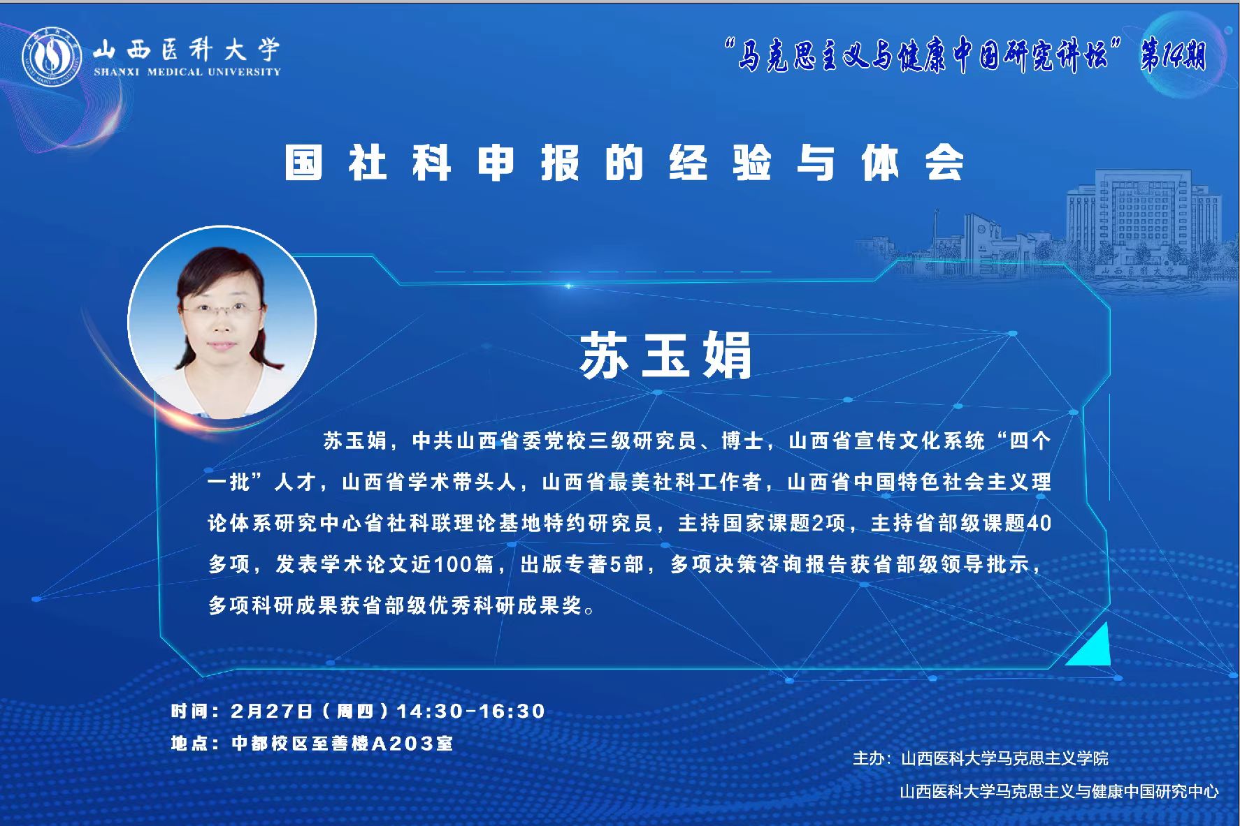 【“馬克思主義與健康中國研究講壇”第14期】蘇玉娟講“國社科申報的經驗與體會”