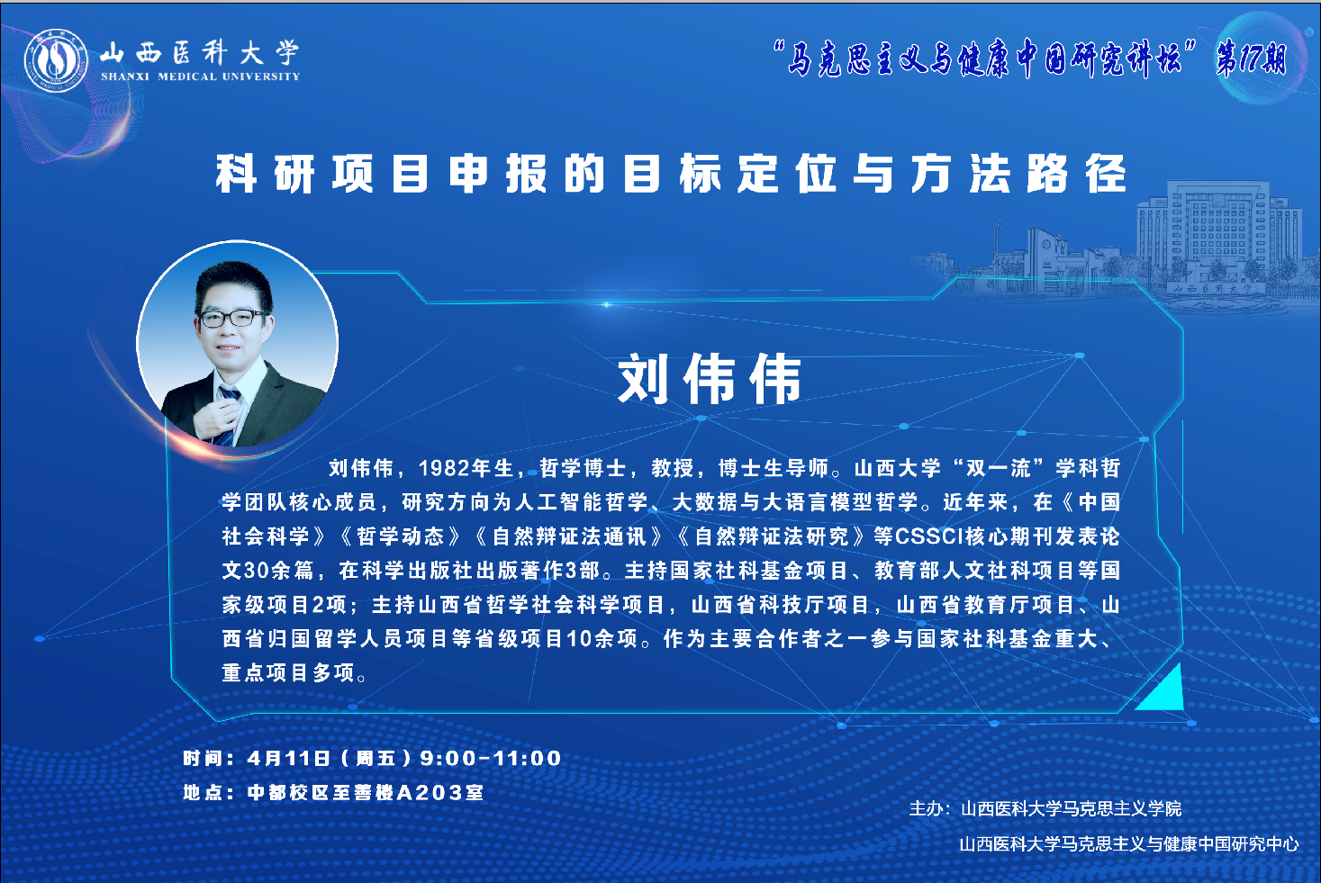 【“馬克思主義與健康中國研究講壇”第17期】劉偉偉講“科研項(xiàng)目申報(bào)的目標(biāo)定位與方法路徑”