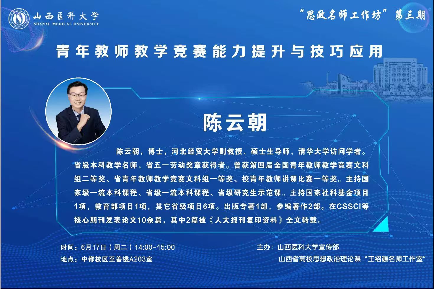 【“思政名師工作坊”第3期】陳云朝講:青年教師教學競賽能力提升與技巧應用