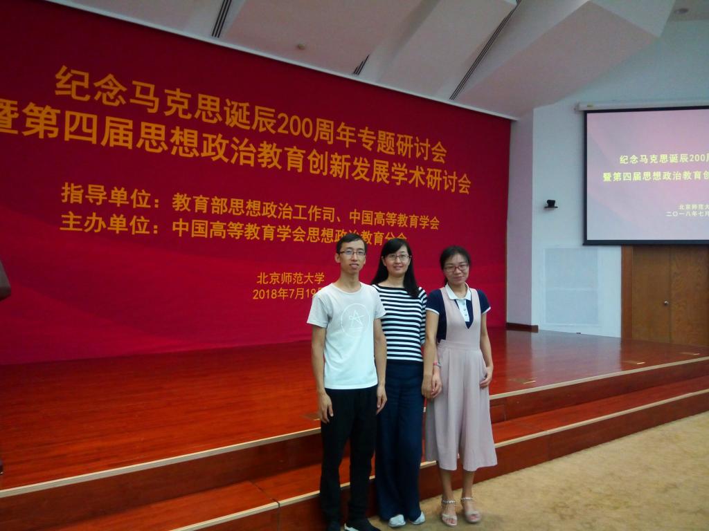 7月19日,我院青年教師劉永梅、楊燁陽、鄧海龍赴北京師范大學參加了由中國高等教育學會思想政治教育分會舉辦的紀念馬克思誕辰200周年專題研討會暨第四屆思想政治教育創新發展學術研討會。