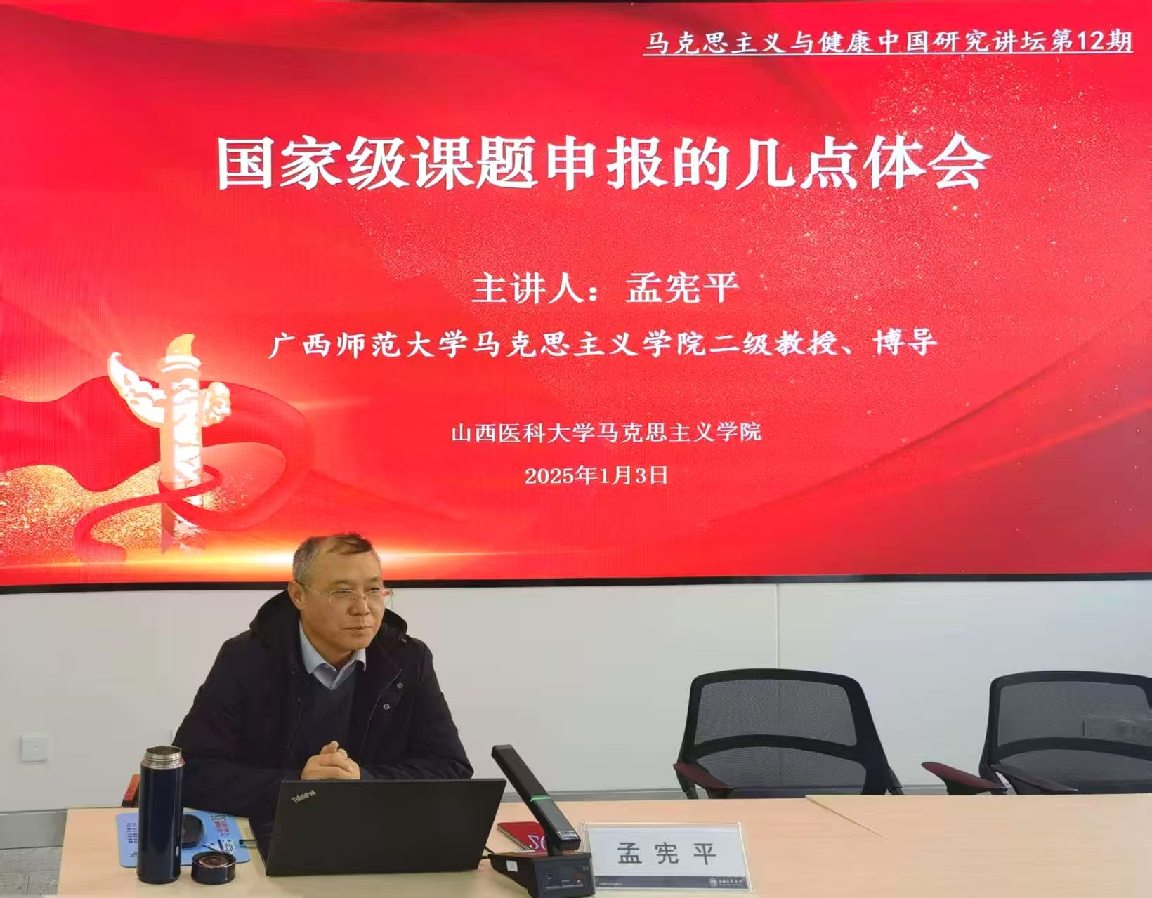 1月3號下午,“馬克思主義與健康中國研究講壇”第12期在至善A203室舉行。本次講座特別邀請了廣西師范大學馬克思主義學院的孟憲平教授,講座主題為“國家級課題申報的幾點體會”。