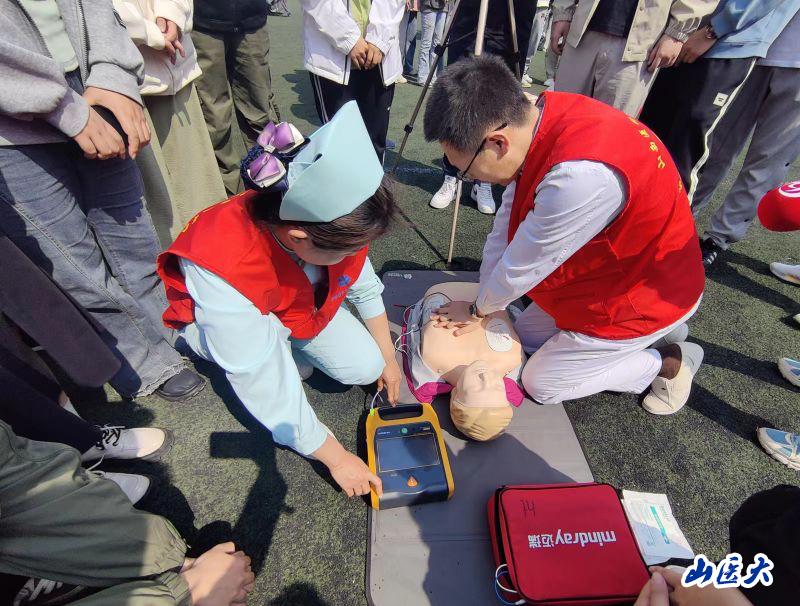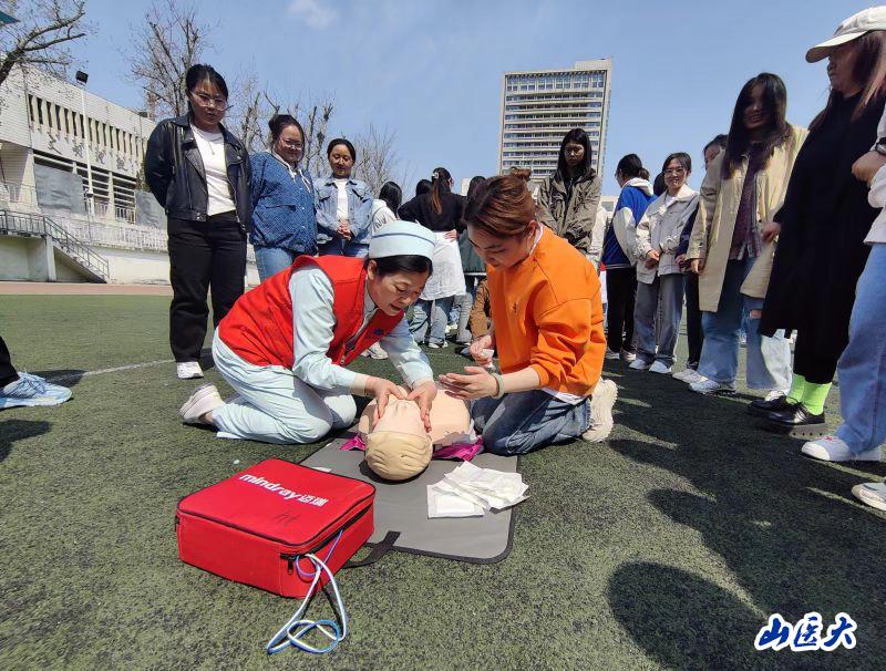 山西日?qǐng)?bào)記者周慧芳報(bào)道 “雙手交叉、掌根重疊,利用上半身體重垂直向下”“零一、零二、零三、零四……先進(jìn)行胸外心臟按壓,然后打開氣道,再人工呼吸”4月8日,c7c7.app麻醉學(xué)院聯(lián)合c7c7.app第一醫(yī)院急診醫(yī)學(xué)中心在迎澤校區(qū)開展急救知識(shí)進(jìn)校園活動(dòng),旨在進(jìn)一步加強(qiáng)學(xué)生自救互救與應(yīng)急處置能力,普及應(yīng)急救護(hù)知識(shí)和技能,幫助學(xué)生熟練掌握應(yīng)急救生的方法,為社會(huì)培養(yǎng)敢于施救、善于施救、樂于施救的新時(shí)代醫(yī)學(xué)青年。
