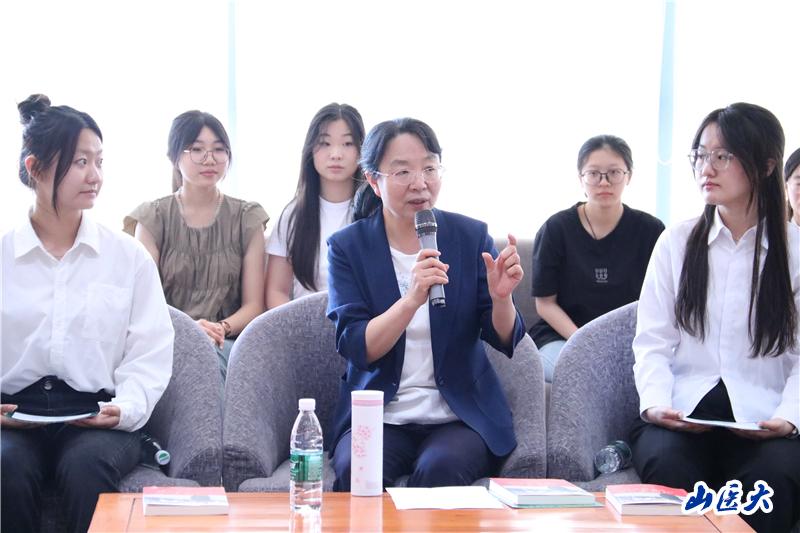 第三環節是互動提問。彭月蘭結合自己的讀書感悟和駐村經歷給現場的師生們答疑解惑。她強調,要養成帶著問題進行閱讀的好習慣,深入挖掘書中內涵,品讀經典原著、研讀專業書籍。要讀原著、學原文、悟原理,堅持學思用貫通、知信行統一,自覺把個人奮斗同國家前途命運緊緊聯系在一起,為衛生健康事業高質量發展貢獻青春力量。