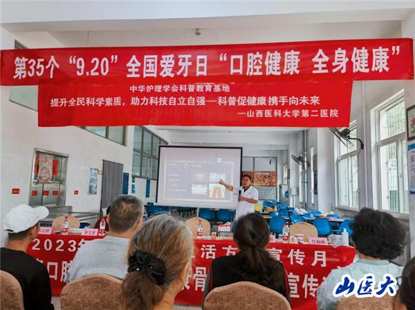 9月20日下午,我校第二醫(yī)院口腔科和預(yù)防保健科為中國電子科技集團(tuán)公司33所的離退休老年群眾進(jìn)行了以“老年口腔健康保健”為主題的科普義診活動。口腔科馬宇鋒主任、李文晉副主任、張曉麗護(hù)士長及任婉峰副主任醫(yī)師和邢立婷主治醫(yī)師等10名醫(yī)護(hù)人員參加了活動。今年是第35個(gè)“全國愛牙日”,今年愛牙日的主題是“口腔健康,全身健康”,副主題是 “關(guān)愛老年口腔,樂享健康生活”。此次活動積極響應(yīng)了《健康中國行動(2019—2030年)》《健康口腔行動方案(2019—2025年)》指導(dǎo)方針和政策,以全面提升老年群眾口腔健康素養(yǎng)。
