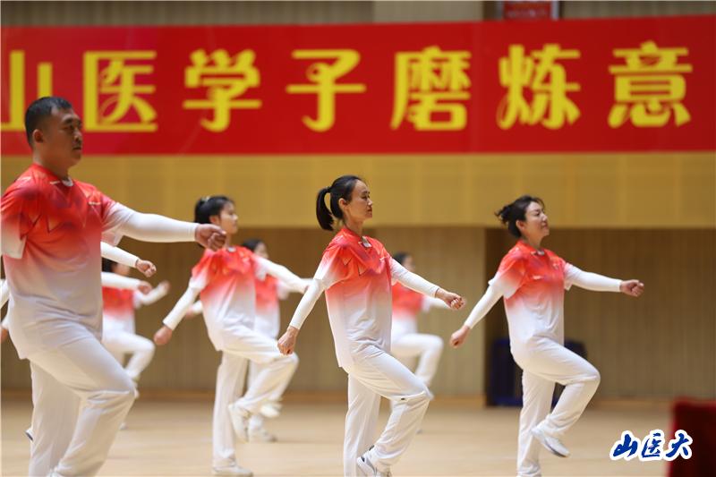 本次比賽共有21個(gè)院系約800名學(xué)生和100多名教師報(bào)名參加。比賽中,各參賽隊(duì)精神飽滿、意氣風(fēng)發(fā),動(dòng)作準(zhǔn)確規(guī)范、整齊劃一,彰顯了山醫(yī)師生積極向上、團(tuán)結(jié)奮進(jìn)的精神風(fēng)貌。