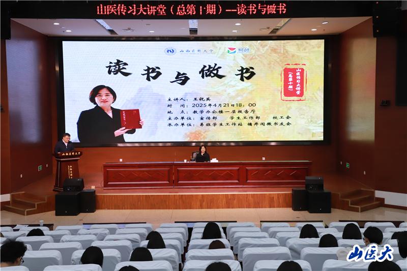 在第30個世界讀書日暨第四屆全民閱讀大會即將來臨之際,4月21日下午,由校黨委宣傳部、學生工作部、校工會主辦,易班學生工作站和“橘井閱微”書友會承辦的“山醫傳習大講堂”之“培育讀書風尚 建設文化強國”專場在中都校區舉行,特邀四川巴蜀書社社長王祝英編審作專題講座。學校相關部門負責人,來自全校的300余名閱讀愛好者和“橘井閱微”書友會成員等聆聽了講座。