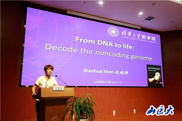 沈曉驊以《From DNA to Life: Decode the noncoding genome》為題,介紹了探索非編碼基因組影響轉錄和染色質結構的新模式,從獨特視角認識發育和干細胞分化中細胞命運決定的普適性規律。包括揭示非編碼RNA順式調控鄰近轉錄和染色質構象;揭示基因組折疊的基層規律,提出轉座子重復序列(L1 和 B1/Alu)是染色質三維大尺度結構形成的遺傳分子基。籖NA結合蛋白通過相分離反饋調控轉錄和染色質狀態。向燁以《病原微生物研究-從臨床到基礎分別》為題,分享了近年來人類重大病毒性傳染病的爆發及流行,介紹了其團隊聚焦于病原微生物結構,致力于研究病毒入侵及組裝分子機制,并基于結構開發生物藥物及疫苗。報告視野寬闊、內容豐富、生動詳實、深入淺出,為我校師生奉獻了一場精彩紛呈的學術盛宴。