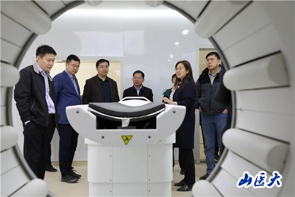 李海濤一行實地考察了中都校區,重點參觀了醫學科學院科技大樓和實驗動物中心,對我?萍計教ㄓ布建設給予了充分肯定;在迎澤校區,專家們參觀了教育部分子影像精準診療省部共建協同創新中心、干細胞再生醫學研究中心等省部級科技平臺建設成果,對我校在分子影像精準診療高端設備研制和干細胞治療領域取得的成績給予了高度評價;在附屬第一臨床醫學院,專家組重點參觀和調研了國家衛健委塵肺病重點實驗室,山西省136興醫工程精神衛生學、呼吸與危重癥醫學學科建設情況,對附屬醫院臨床專科建設和平臺建設給予了指導。