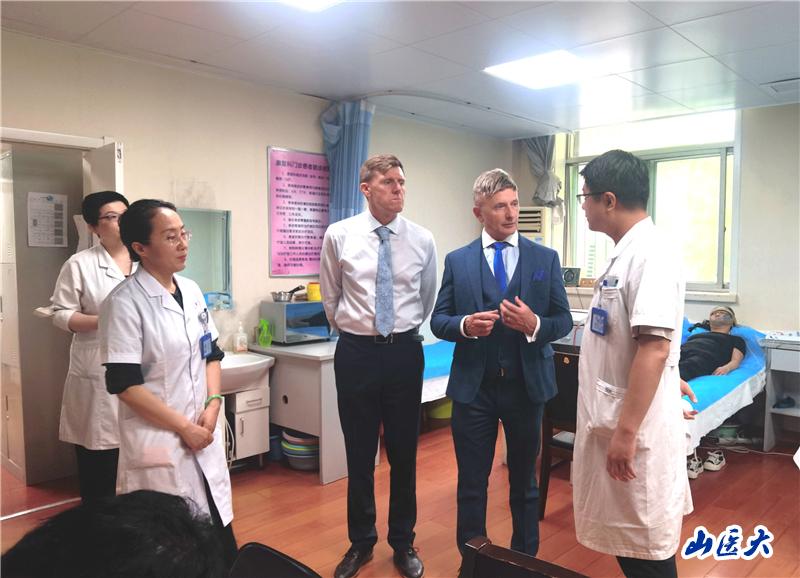 隨后,舉行了兩校中外合作辦學(xué)洽談會。黨委常委、副校長焦向英出席會議,教務(wù)部、研究生學(xué)院、國際教育學(xué)院、公共衛(wèi)生學(xué)院、護(hù)理學(xué)院和康復(fù)醫(yī)學(xué)等院系負(fù)責(zé)人參加座談。焦向英介紹了學(xué)校在專業(yè)建設(shè)、科學(xué)研究、人才培養(yǎng)及國際化等方面的辦學(xué)特色和工作亮點(diǎn)。他表示,這次實(shí)地到訪,進(jìn)一步加深了兩校間的了解和互信,將凝聚合力推動兩:獻(xiàn)靼煅淶羋涫。Robin Carey對合作過程中各相關(guān)學(xué)院團(tuán)隊(duì)積極、高效、細(xì)致的工作給予高度評價(jià)。他表示,兩校強(qiáng)強(qiáng)聯(lián)合,一定可以培養(yǎng)出更多適應(yīng)新時代健康發(fā)展、國際化、高素質(zhì)優(yōu)秀醫(yī)學(xué)人才。