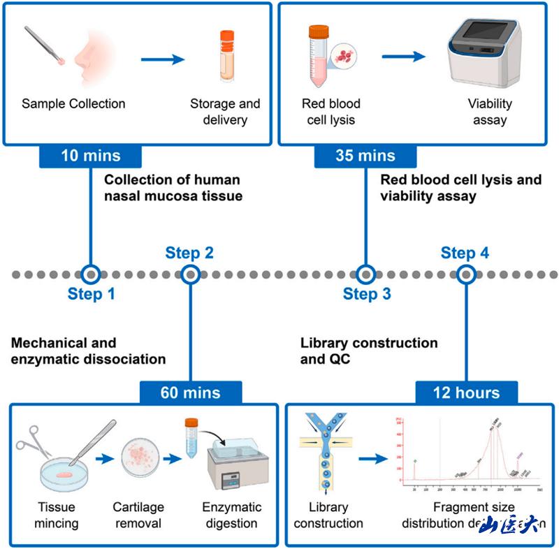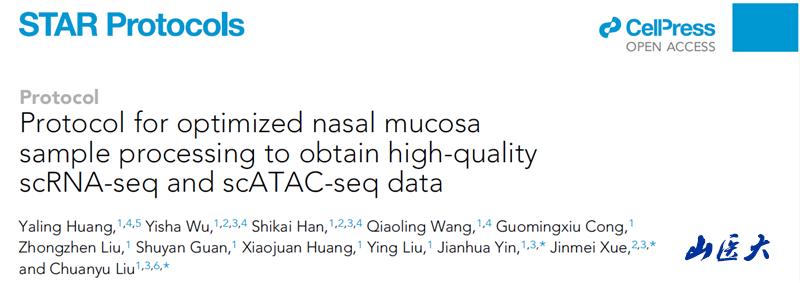 近日,我校第二醫(yī)院薛金梅團(tuán)隊依托c7c7.app-華大未來醫(yī)學(xué)聯(lián)合研究中心,與華大生命科學(xué)研究院劉傳宇團(tuán)隊合作,在《STAR Protocols》上聯(lián)合發(fā)表了一篇題為“Protocol for optimized nasal mucosa sample processing to obtain high-quality scRNA-seq and scATAC-seq data”的論文。薛金梅教授、華大生命科學(xué)研究院的劉傳宇副研究員和殷建華副研究員為論文的共同通訊作者。我校學(xué)生武毅莎、韓世鍇,與香港中文大學(xué)學(xué)生黃亞靈,以及西南大學(xué)學(xué)生王巧玲為論文的共同第一作者。