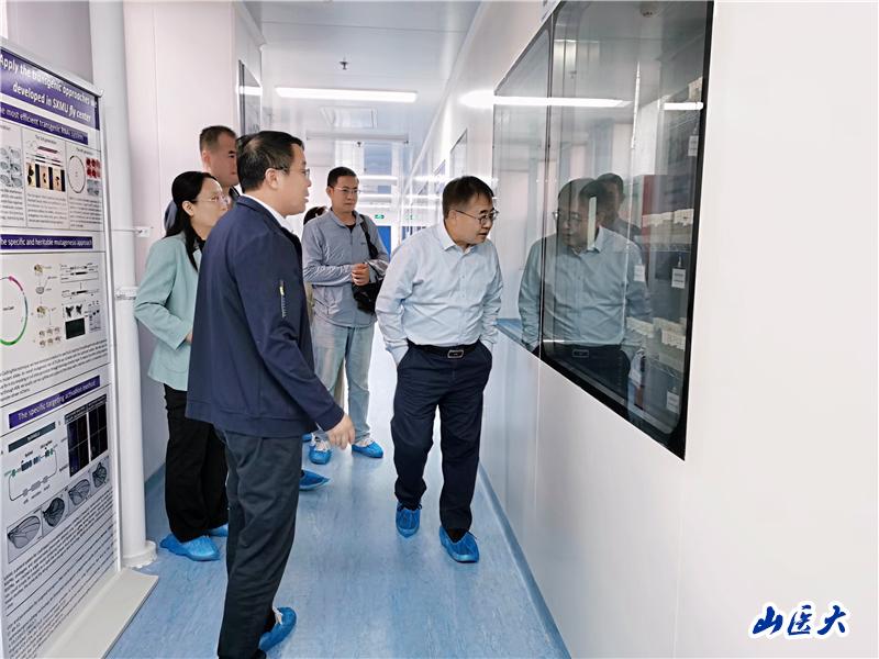 會后,賀爭鳴研究員在陳朝陽教授和宋國華教授陪同下參觀了中都校區實驗動物中心。他對中心發展給予了充分肯定,并對中心未來工作提出指導意見。