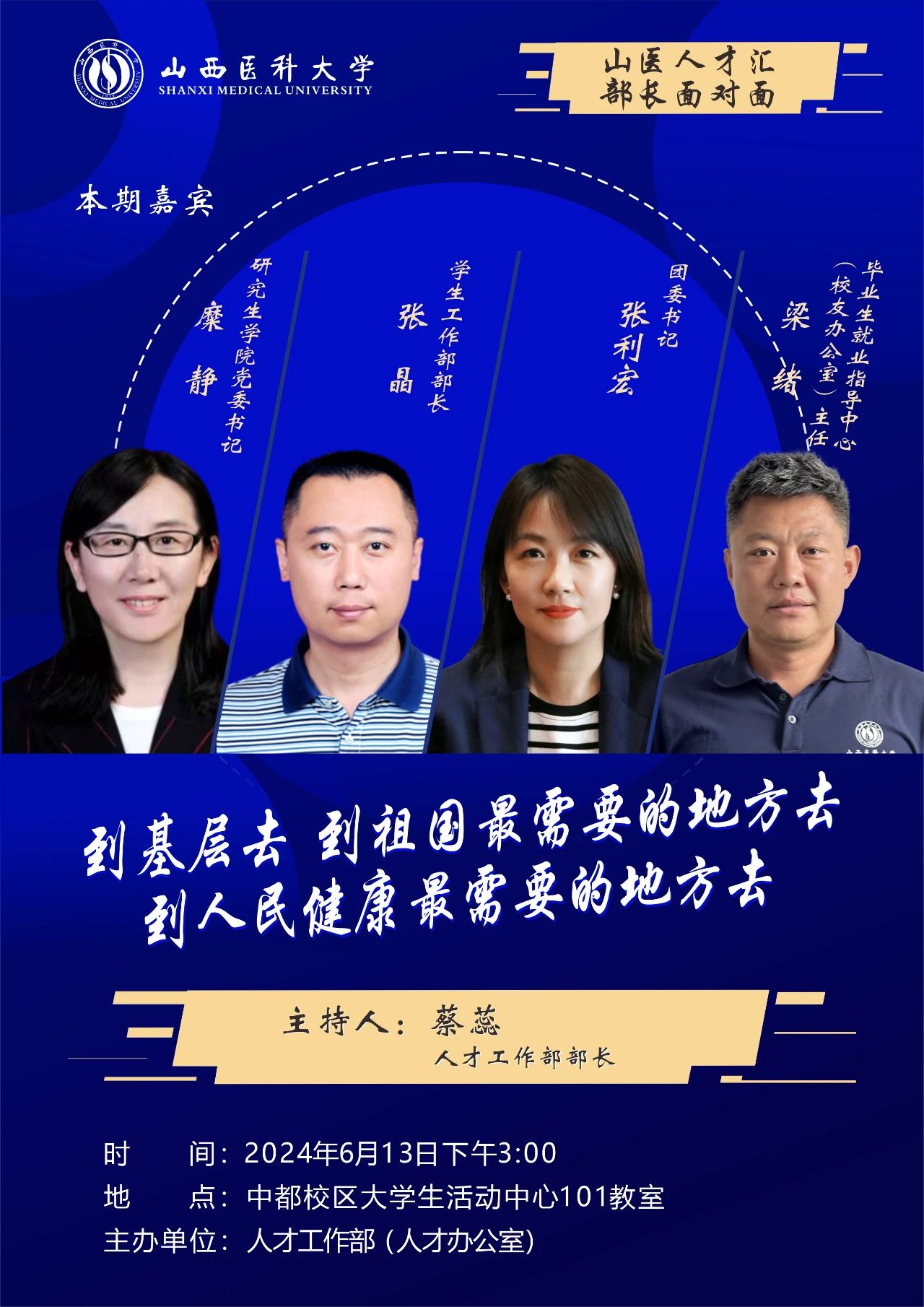 “山醫人才匯”品牌活動,繼“書記邀約”“校長零距離”之后,持續推出“部長面對面”“院長點對點”“導師手把手”系列人才活動,引領人才發展,托舉人才成長。面對面交流,實打實問需。歡迎大家持續關注,誠邀大家積極參加。