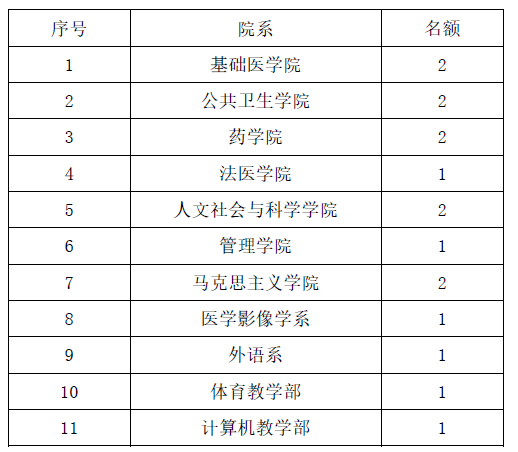 根據文件要求,我校共16個培訓名額,各院系培訓名額分配情況見下表。