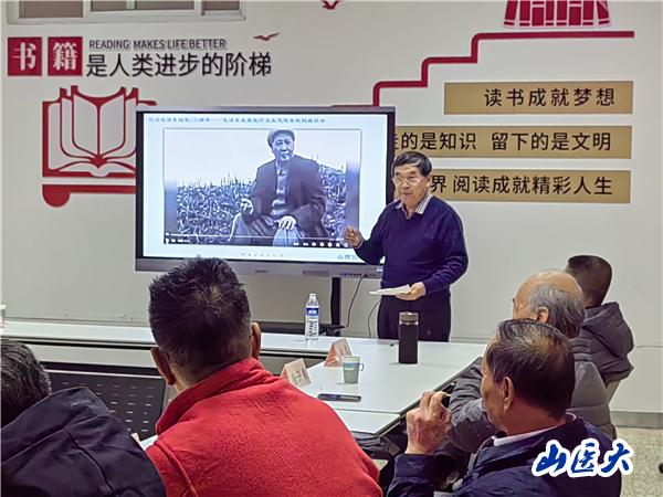 程牛亮代表校教學督導委員會專家發言,他指出,毛澤東同志的一生是為人民謀利益的一生,他依靠人民、為了人民,一生談論最多的就是人民,面對當時缺醫少藥的情況,毛澤東提出“中醫藥是偉大寶庫,應挖掘提高”的觀點。董海濤在發言中指出,習近平新時代中國特色社會主義思想,是對馬克思列寧主義、毛澤東思想、鄧小平理論、“三個代表”重要思想、科學發展觀的繼承和發展,是馬克思主義中國化最新成果。徐計秀作了《毛澤東思想與發展醫療衛生的理論與實踐》報告,圍繞世界衛生組織對人人享有基本醫療保健的要求、建黨百年來實現人人享有基本醫療保健的中國道路、毛澤東同志與新中國醫療衛生工作等進行了闡述。曲成毅表示,中華人民共和國成立后,毛澤東同志高度重視衛生健康體系建設,自己年輕時將所學醫療知識全面運用到實踐中去,體驗生動深刻,新時代的青年學子也要注重到實踐中去學習、去提高。