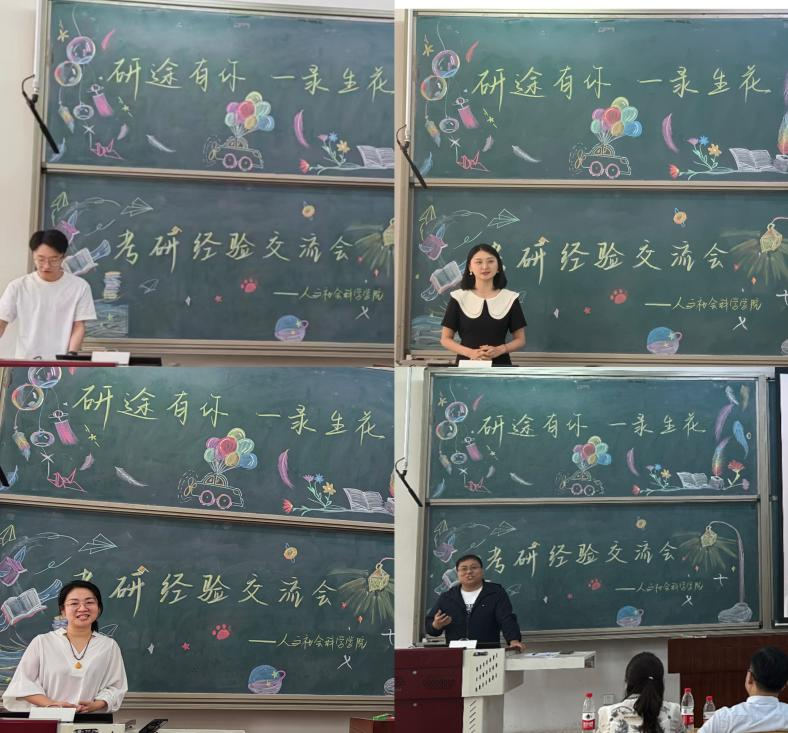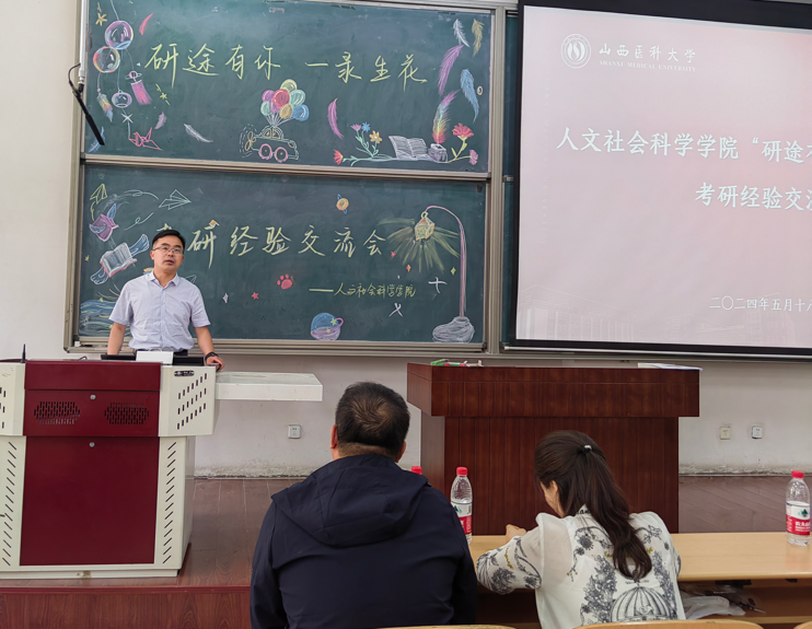 5月18日上午,人文社會科學學院于中都校區篤行C101舉行了“研途有你,一錄生花”考研經驗交流會。學院黨總支書記姚尚滿、黨總支副書記韓瑜、王志中教授、劉超老師和楊卿老師參加會議。本次會議邀請2007級校友賈婷婷、2014級校友劉卓曉以及2020級任珂佳、王雪洋、申彬婭、許博四位同學進行了分享交流。學院2021級、2022級、2023級200多名本科生參加了交流會。