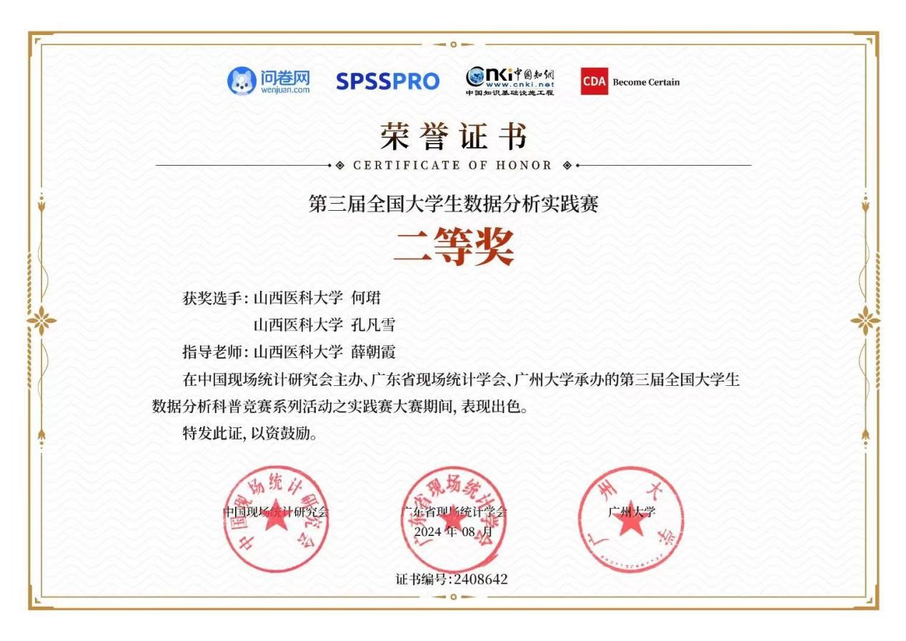此次獲獎,是我校重視實踐教學、著力培養學生創新思維與數字化能力的成果體現。它不僅是對獲獎同學及指導老師辛勤付出的肯定,也將激勵更多學生積極參與到數據分析等學科實踐與競賽中,為相關領域發展貢獻青春力量。