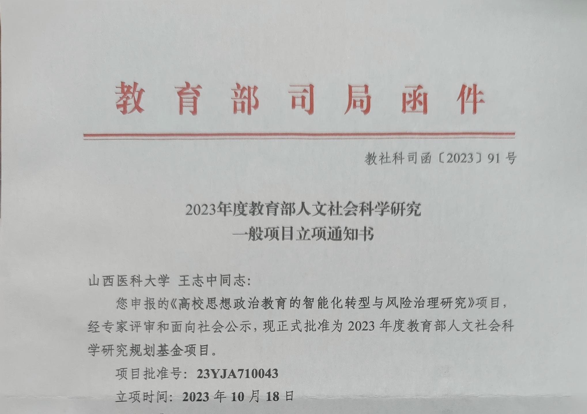 我院王志中教授喜獲2023年度教育部人文社會科學(xué)研究一般項(xiàng)目立項(xiàng)。