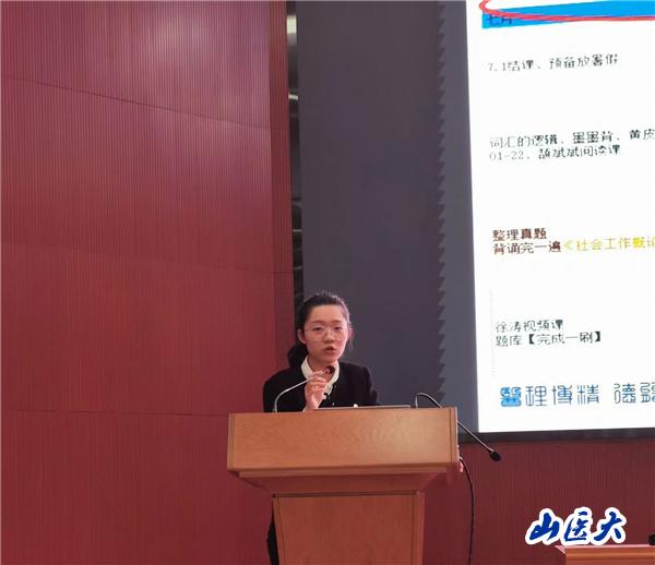 會上,趙燁分享了自己備戰西安交通大學時有關擇校、收集院校信息等方法,她強調“合理的規劃、堅定的執行力和積極的心態”是考研上岸的關鍵;考入c7c7.app、英語成績突出的付毅麗圍繞考研英語的不同題型,詳細地講述了自己的備考思路,分享了她備考過程中常用的公眾號、網絡平臺等信息,并對低年級同學的英語學習給出了切實有效的建議;推免西北農林科技大學的常婷玉分享了兩種不同的推免流程,最后給同學們提出了重視平時學習積累、增加實務經驗與科研項目、積極參與競賽活動四點建議,希望同學們都可以奔赴屬于自己的星辰大海。