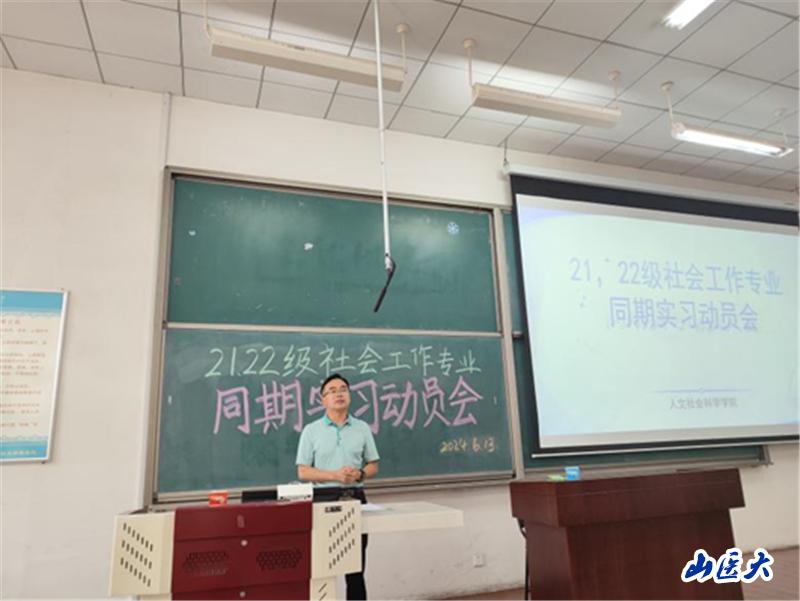 隨后,實習指導老師對各實習機構的具體情況和實習任務進行了詳細介紹,同時強調了各機構的注意事項,確保同學們能夠安全、有效地完成實習任務。會議特別邀請到山西省人民醫院醫務處魏江巍老師,他詳細闡述了醫務社會工作實習的基本情況,讓同學們對即將面臨的挑戰和機遇有了更清晰的認識。