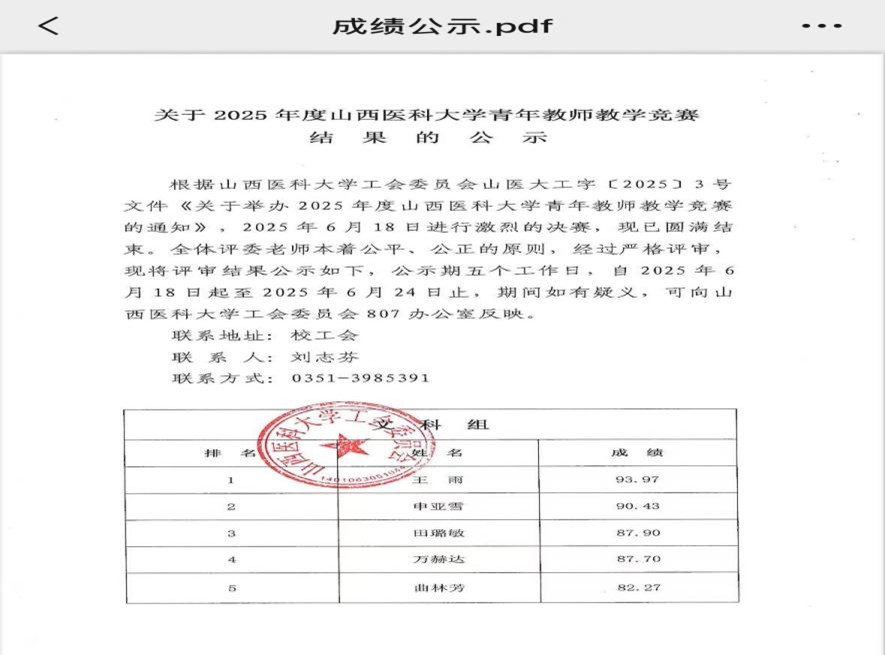 6月18日,我校教學競賽在中都校區舉行。經過層層選拔,共有來自不同院系的42名優秀青年教師入圍決賽,他們以精湛的教學技巧、創新的教學方法和富有感染力的授課方式,為在場的評委呈現了一場精彩紛呈的教學盛宴。經過激烈角逐,我院3名被推選參加校賽的青年教師表現突出,成績斐然。王雨榮獲校級文科組第一,申亞雪獲校級文科組第二,田璐敏獲校級文科組第三。