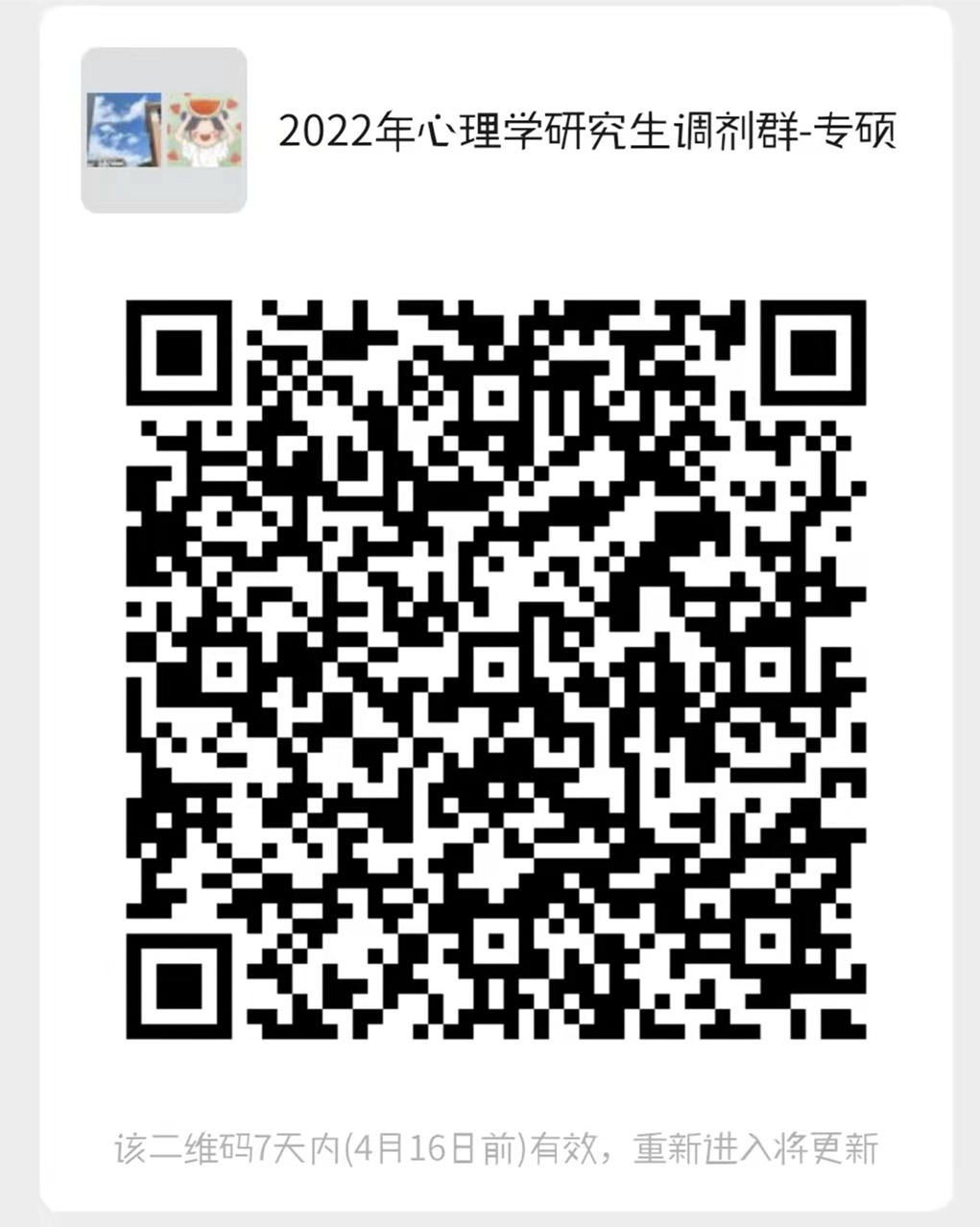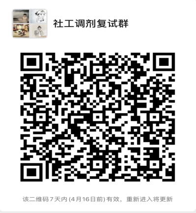 人文社會科學學院成立調劑復試工作微信群(社工專業、應用心理專業、人文醫學專業),請接收到調劑通知并進入復試名單的考生掃描二維碼進微信群,進入時請備注自己的姓名和報考專業,所有關于招生工作的通知我們會在群里和官網進行公布,有任何關于招生工作的問題也可以在群里提問,無關人員勿入。