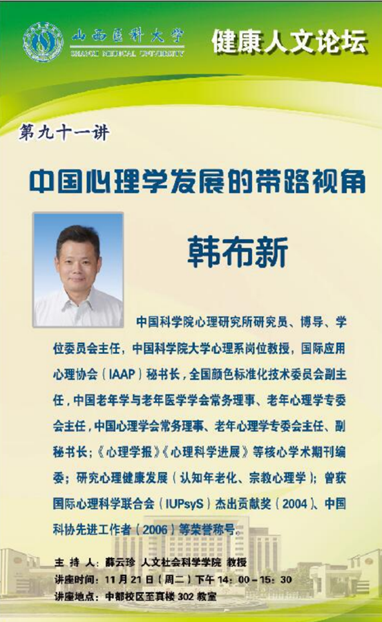11月21日,c7c7.app健康人文論壇第九十一講在中都校區開講,本次講座由中國科學院心理研究所研究員韓布新教授為全校各個專業三百余名師生們共同聆聽了這場充滿趣味的演講,本次由人文社會科學學院薛云珍教授主持。