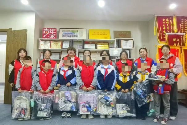 活動現?。駒剛咼怯牒⒆用且歡砸喚岫?,開啟了充滿溫情與知識的互動之旅。志愿者們首先為孩子們分發了書包、文具盒、套尺等學習用品,以及口琴、跳繩等文體用具,讓孩子們在收到物資的瞬間便感受到濃濃的暖意。