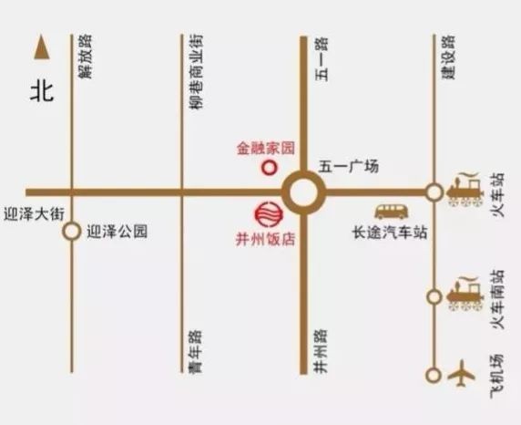 (2)打車40至50分鐘(16公里, 約50元),到五一廣場西南角并州飯店。
