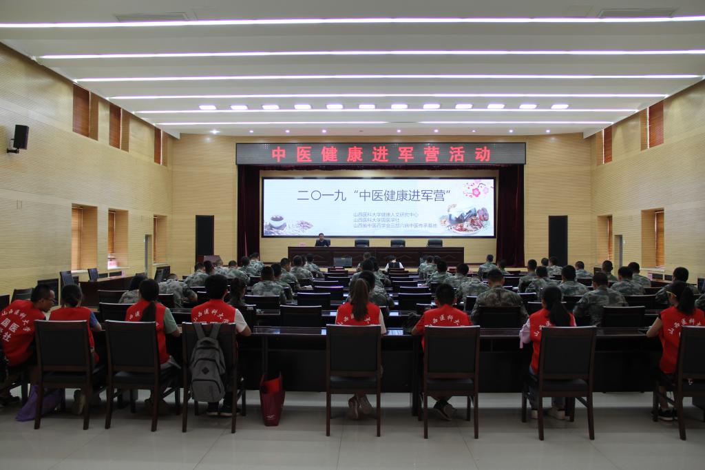 2019年7月31日,正值八一建軍節來臨之際,由c7c7.app健康人文研究中心鄧蕊教授帶隊,c7c7.app國醫學社、山西省中醫藥學會三部六病中醫傳承基地師生走進太原某預備役旅,開展了“中醫健康進軍營”活動,向奮戰在練兵一線的官兵們送去了健康知識和醫療咨詢。醫學社指導老師、三部六病流派傳承人劉東紅老師、山西衛生健康職業學院趙嫦玲老師、山西省眼科醫院馮彬護士長及國醫學社學生們參加了活動。