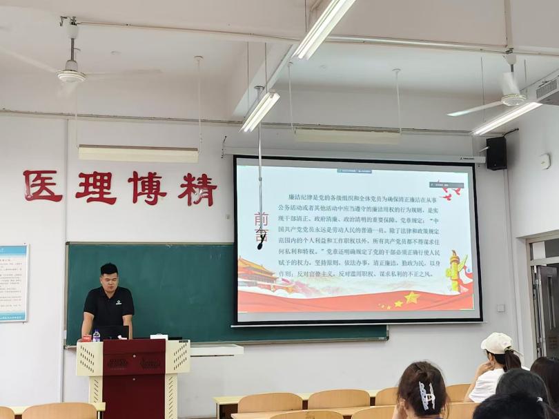 黨課的第二部分由馬克思主義學院的研究生趙坤主講。他圍繞廉潔紀律的歷史展開了講述,從黨的創(chuàng)立之初的艱苦奮斗,到如今的繁榮昌盛,廉潔紀律一直是黨的重要法寶。他列舉了多個具體案例,生動形象地展示了違反廉潔紀律的嚴重后果。其中,他特別提到了一種學生違反紀律的行為——購買學分券。這種行為不僅違反了學校的規(guī)章制度,更違背了黨的廉潔紀律要求,是一種極其不負責任和自私自利的表現。