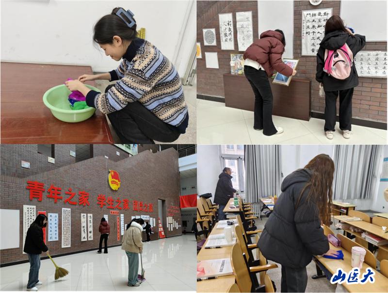冒著皚皚白雪,60多名學生團員分片劃區,包干到位,先后來到學校北門,認真清掃地面塵土,精心擦拭門匾積灰;在大學生活動中心、在教室,同學們不怕冷、不怕累,一邊仔細清掃,一邊分享勞動收獲。大家紛紛表示,奉獻是一種快樂,更是一種力量,能夠激勵我們不斷前行。作為醫學生,一定要在學習上能吃苦,在工作上能奉獻,用心守護校園,為實現中華民族偉大復興的中國夢貢獻自己的力量。