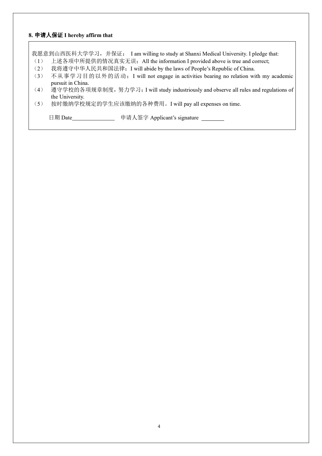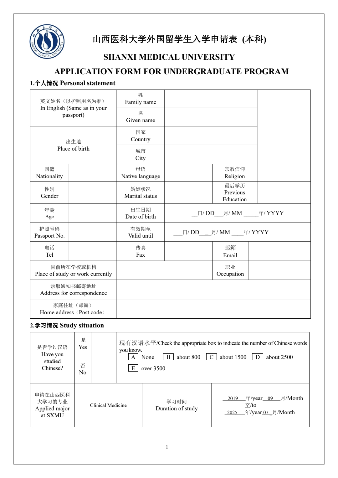 SHANXI MEDICAL UNIVERSITY APPLICATION FORM