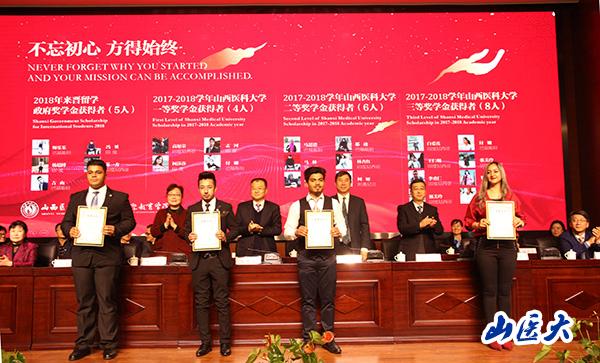 Subsequently, Deputy Party Secretary He Peifeng read out the list of winners of the International Student Scholarship for the school year 2017-2018, and the leaders awarded the certificates to the international students who received the scholarship of the Government for studying in Shanxi and the scholarship of outstanding students in Shanxi Medical University.
