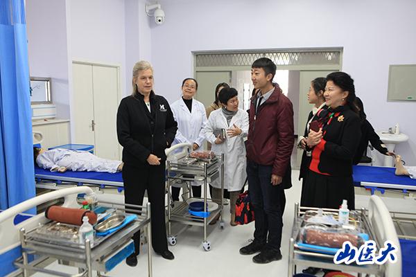 During this visit, the delegation was also guided to the Remote Consultation Center of the First Hospital, the Training Center of the Department of Nursing, the Life Science Museum, the Library and the International Student Apartment.
